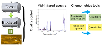 Qualitative and quantitative evaluation of methyl cotton biodiesel in biodiesel/diesel blends using multivariate control charts and partial least squares.