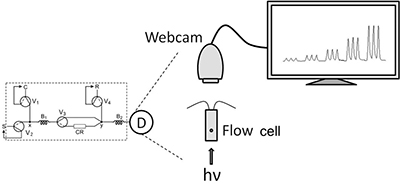 A webcam is used as the detector in a flow analysis system, and the feasibility of the approach is demonstrated in the determination of nitrite and nitrate in natural waters.