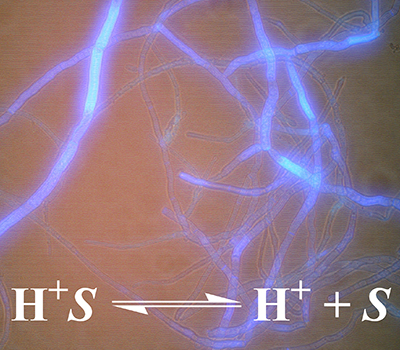 How to cite this articleFungal mycelium is a fundamental component of complex ecological networks with several symbiotic and dissipative properties on terrestrial biogeochemical matrix. The vast presence of mycelium is responsible for the control of chemical potential (e.g. pE and pH) of aqueous phase on soils, contributing to its response (buffering) capacity and the time controlling of physical-chemical conditions, as shown for the model of complex system S. Details are presented in the Article Equilibrium and Out-Of-Equilibrium Investigation of Proton Exchange and CuII and ZnII Complexation on Fungal Mycelium (Trametes hirsuta) by Vicente R. Almeida, Bruno Szpoganicz, Lei Chou, KittyBaert, Annick Hubin and Steeve Bonneville on page 15.