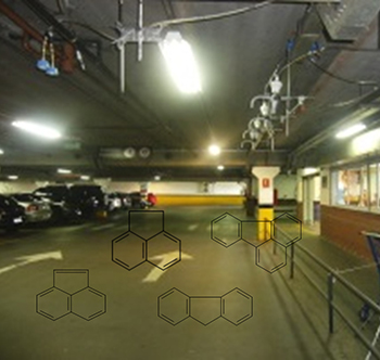 Gaseous polycyclic aromatic hydrocarbons (PAHs) in a parking lot impacted by gasoline and ethanol blend used in flex-fuel vehicles.