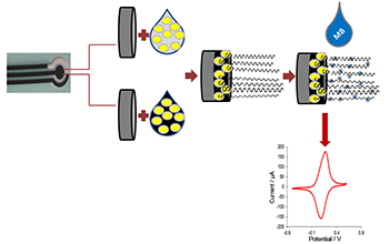 Two different gold nanoparticles (AuNPs and polylactic acid-AuNPs) were prepared for construction of biosensors on screen-printed electrode. The performance of fabricated biosensor based on polylactic-stabilized AuNPs shows better sensitivity and stability.