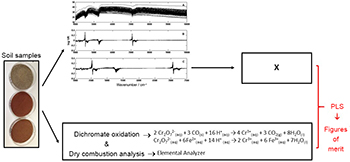 A comparison between dichromate oxidation and dry combustion analysis as reference methods in multivariate calibration from near infrared spectroscopy was evaluated.