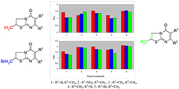 27 potentially active thiazolo[3,2-a]pyrimidine derivatives were analyzed by two methods: reversed phase high performance liquid chromatography (RP-HPLC) and reversed phase thin layer chromatography (RP-TLC) methods. Determined lipophilicity parameters are in the range from 0 to 5. It is mean that there are hydrophobic substances, soluble in the lipid phase and in case of being used as drugs, they will be active after oral application.