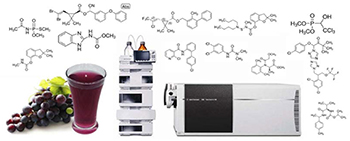 Development of a liquid chromatography-tandem mass spectrometry (LC-MS/MS) method for the determination of 25 pesticides, which are widely used in grape culture in Brazil, in grape juice. The method was validated according with INMETRO (Instituto Nacional de Metrologia Qualidade e Tecnologia).