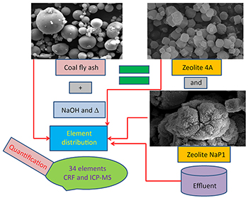 The mobilization of several elements of coal fly ash to end products, washing waters and the effluent of the zeolite two-steps synthesis, was evaluated. The presence of highly toxic elements (As, Cd, Cr, Ni and Pb) in the end products indicates the need for pre-treatment of the ash to ensure a safe zeolite application.
