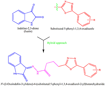 A series of oxadiazolyl-2-oxoindolinylidene propane hydrazides were synthesized based on hybrid approach. Two compounds from this series exhibited good analgesic and anti-inflammatory activity with better protection compared to indomethacin. These compounds also exhibited good dock score of about -4.44 by the K-nearest neighbors (KNN)-genetic algorithm method.