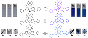 Three new unsymmetrical diarylethenes were synthesized, exhibiting a notable photochromism. Diarylethenes with thienyl/thiazyl unit showed higher photocyclization quantum yield than that with phenyl moiety, which was ascribed to the existing weak N...S heteroatom-contact.