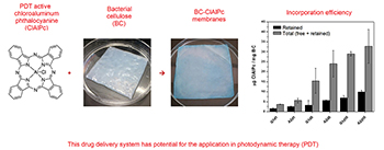 The bacterial cellulose (BC)-chloroaluminum phthalocyanine (ClAlPc) membranes were evaluated as a potential drug delivery system for photodynamic therapy of skin cancer.
