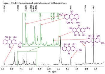 Five anthraquinones in Radix et Rhizoma Rhei could be quantified accurately using featured signals from 1H nuclear magnetic resonance (NMR), implying that quantitative 1H NMR represents a feasible alternative to high-performance liquid chromatography (HPLC)-based methods for quantitation of anthraquinones in Radix et Rhizoma Rhei.