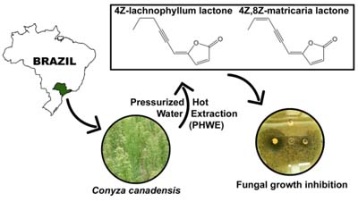 Compounds obtained from the plant Conyza canadensis through pressurized hot water extraction presented antifungal activity.
