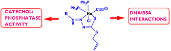 Ruthenium(II) complexes containing S-allyldithiocarbazate derivatives, potentially active towards in vitro biomolecular interactions and bio-catalytic transformations such as catechol oxidation and phosphate hydrolysis.