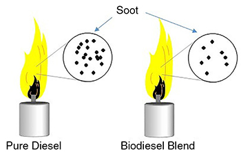 Biodiesel/diesel blends flames are investigated using LII. The results showed a decrease of soot production as the amount of biodiesel was increased.