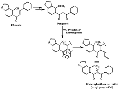 Dibenzoylmethane derivatives with a substituent on C-8 are extremely rare in nature. These compounds can potentially be used as biomarkers of closely related genera. Two compounds showed strong activity against human cancer cell lines.