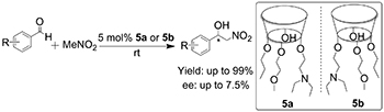 Inherently chiral calix[4]arenes can catalyze Henry reaction between aromatic aldehydes and nitromethane in excellent yields but poor enantioselectivities.