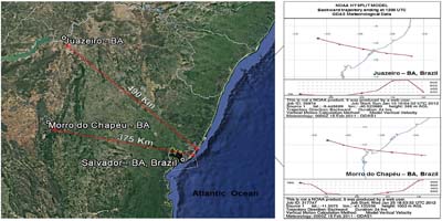 The sea spray presence in the atmosphere of the Semiarid was investigated. The trajectories of air masses for each sampling period showed that the air mass that arrived in the region passed over the ocean. The sea spray amount which reaches the region is insufficient to salinize waters.