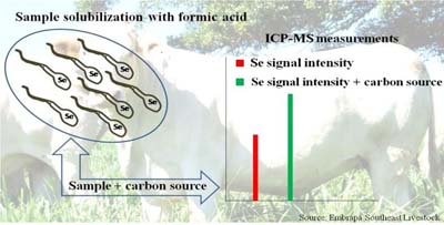 A simple and fast procedure for Se determination in bovine semen by ICP-MS after sample solubilization with diluted formic acid.