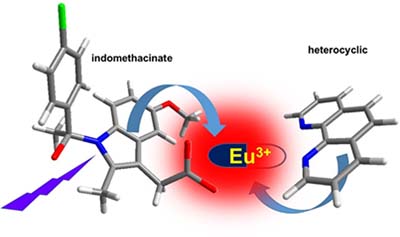 Photophysical properties of the complexes were evaluated from luminescence data. It is proposed two intramolecular energy transfer mechanisms, which involve the participation of excited electronic states of the heterocyclic ligands as intermediate ones.
