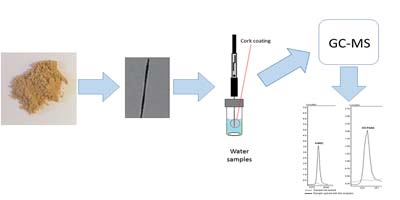 This study is related to the use of cork as a material of natural origin, renewable and biodegradable for the determination of two classes of UV filters in water samples. The results showed good extraction efficiency, as well as satisfactory analytical performance.