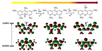 Optimized TNA structures in ethanol: their HOMO/LUMO molecular orbitals and different colors according to the mediums.