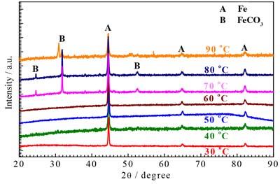 When carbon steels were exposed in CO2 saturated solutions at different temperatures, corrosion product film with different structure and composition formed on the surface of carbon steels and dominated the corrosion rate of carbon steels significantly.