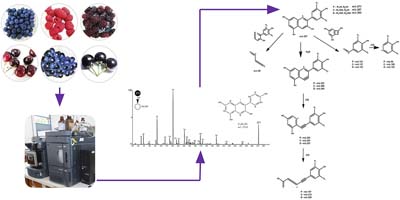 This work aim is to identify and quantify three different anthocyanidins in six different berries and shows the elucidation of a general fragmentation mechanism.
