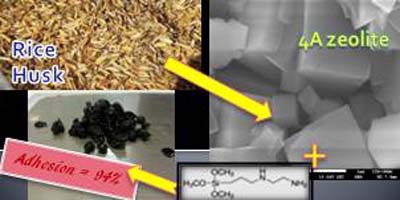 4A zeolite synthesized from rice husk by microwave-assisted hydrothermal synthesis without aging time increases the effect of the antistripping additive.