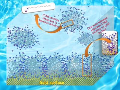 With a suitable cetyltrimethylammonium bromide (CTAB) model, we carried out molecular dynamics (MD) calculations that were able to describe most of the surfactant behavior as aggregates (micelles) in aqueous solution, as well as its interaction and molecular arrangement pattern on gold surface. Details are presented in the Article Molecular Dynamics Simulations of Cetyltrimethylammonium Bromide (CTAB) Micelles and their Interactions with a Gold Surface in Aqueous Solution by José Adriano da Silva, Roberta P. Dias, Gabriel C. A. da Hora, Thereza A. Soares and Mario R. Meneghetti on page 191.