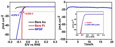 A nanostructured porous gold based electrocatalyst was fabricated via a facile electrochemical approach and an excellent activity with good stability for hydrogen evolution reaction was noticed.