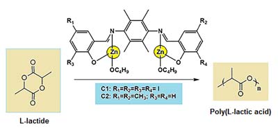 Bimetallic ZnII complexes with phenoxy-imine ligands were synthesized and used as initiators for lactide polymerization.