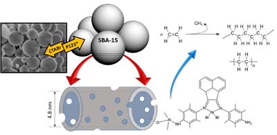 Polymerization reaction with a nickel-based catalyst supported on SBA-15 mesoporous materials.