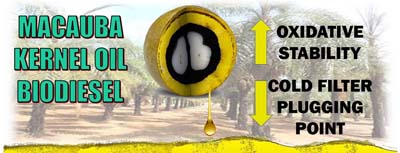 The oil from the kernel of macauba presents high stability to oxidation, property that is transferred to its biodiesel, which also presents low cold filter plugging point. Such properties are inherited by its blends with biodiesels obtained from other vegetable oils.