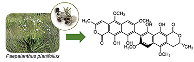 New naphthopyranone dimer named planifoliusin A isolated from Paepalanthus planifolius.