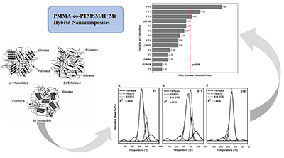 A full factorial design was utilized to synthesize and to statistically study thermal properties of montmorillonite/poly(methyl methacrylate) nanocomposites.