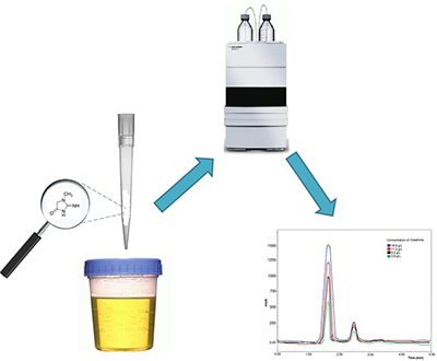 A simple, sensitive and reliable DPX/LC-UV (disposable pipette extraction using liquid chromatography with ultraviolet detection) method for the rapid determination of creatinine levels in urine samples.