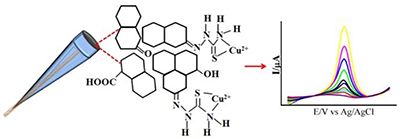Carbon paste electrode modified with Vulcan-carbazone presenting electroanalytical response for Cu2+ ions.