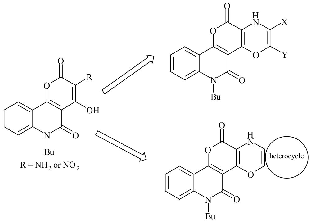 Starting from 3-amino and/or 3-nitro-4-hydroxypyranoquinolindione, some novel 1,4-oxazinopyranoquinolinone derivatives have been synthesized.