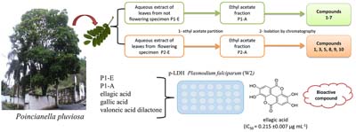Ten phenolic compounds were isolated from leaves of Poincianella pluviosa (Fabaceae). Among the major compounds, ellagic acid was the most active against Plasmodium falciparum (W2).