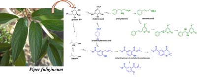 Kavalactones and benzoic acid derivatives from Piper fuligineum shows dichotomous biosynthetic pathways and shikimic acid is a common precursor of this two different classes.