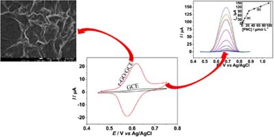 A voltammetric method is proposed by a simple electrodeposition of reduced graphene oxide on glassy carbon electrode. The modified electrode showed a 20-fold increase in analyte signal compared to unmodified electrode.