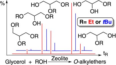 Gas chromatography-mass spectrometry (GC-MS) identification of ethyl and t-butyl glyceryl ethers.