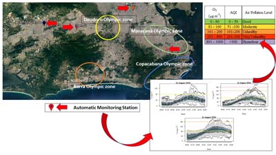 The air quality indexes (AQIs) determined in Rio de Janeiro from July to September 2016, before and during the Summer Olympic and Paralympic Games, in four monitoring stations, were compiled and analyzed.