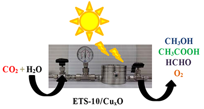 Solar fuels were obtained from CO2 and H2O photoreduction using ETS-10/CuxO as photocatalyst.