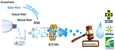 Determination of 25 elements in fresh and sea water by inductively coupled plasma mass spectrometry (ICP-MS) in order to support four Brazilian regulations. High matrix introduction (HMI) system allowed sea water analysis with only 2-fold dilution.