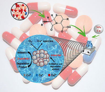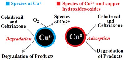 The removal process of antibiotics can occur through degradation by Cu+ species and also adsorption by Cu2+ hydroxides/oxides which can be formed on the surface of nanoparticles.