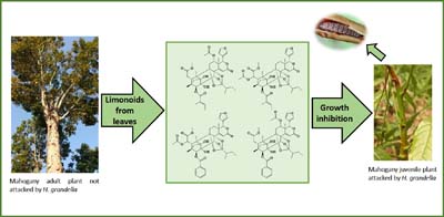 Eight new phragmalin limonoids with an 8,9,30-ortho-ester unit, together with eight known were isolated from Swietenia macrophylla King. Four known limonoids show a significant reduction in the larval weight of Hypsipyla grandella.