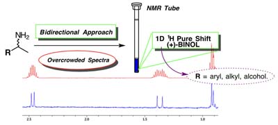 The 1H pure shift nuclear magnetic resonance (NMR) experiment and the readily available (+)-1,1'-bi-2-naphtol (BINOL) chiral auxiliary can be used for routine chiral discrimination analysis of complex NMR spectra.
