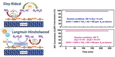 The Eley-Rideal mechanism and superior H2O resistance of Mn7.5/foamed metal nickel (FMN) catalyst in NH3-selective catalytic reduction (SCR) reaction.
