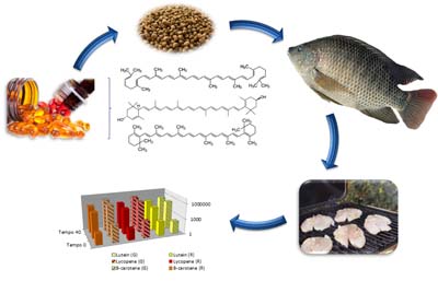 Lycopene, lutein and beta-carotene capsules were supplemented to tilapia (genetically improved farmed tilapia, GIFT). An increase in the concentration of all compounds supplemented, as well as the preservation in the lipid quality was observed in the fillets, even after thermal processing.