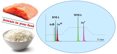 AsB, DMA, AsIII, MMA and AsV in rice and fish were separated in 15 min by high-performance liquid chromatography with inductively coupled plasma-mass spectrometer (HPLC-ICP-MS) using an Agilent Bio SAX column and salt gradient elution.