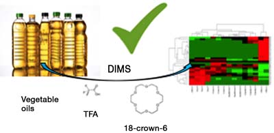 Simple and rapid analysis of commercial oils by direct injection electrospray ionization mass spectrometry (DIMS) and identification of adulteration in olive oil.